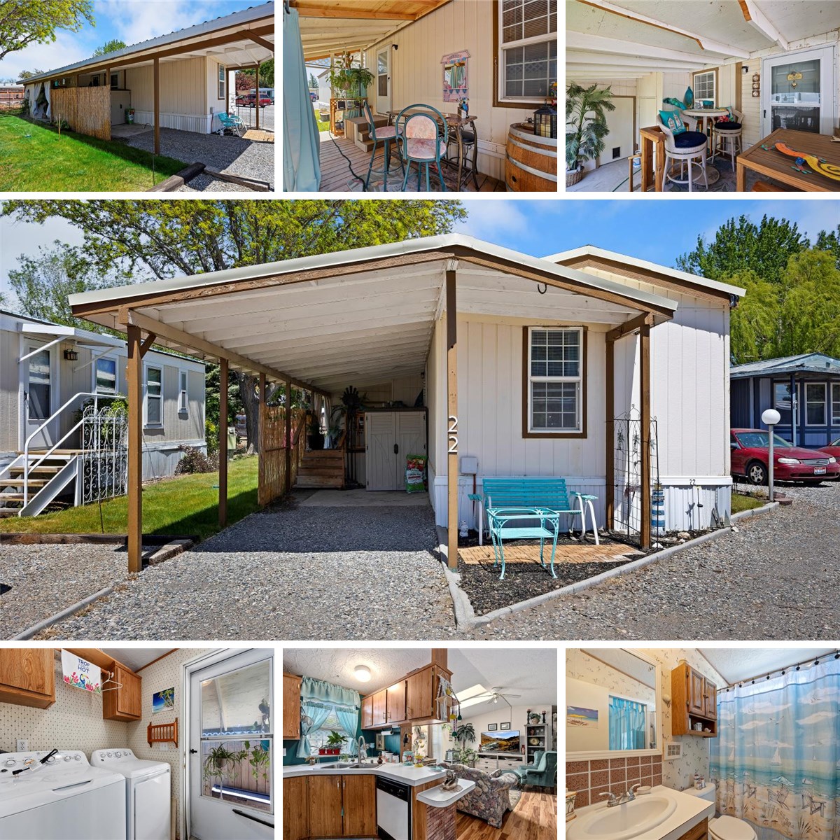 Beautifully maintained home in a 55+ Community. Carport leads to a covered patio in the entry. There is also a cozy back covered patio that is 19x9 feet. Two storage sheds come with this home. The back has a partial wood fence and water available with an irrigation spigot. Parking is available for 2 vehicles. The Deposit is $50 and an approved application is required with the park Manager. The lot fee is $400 each month. Seller will pay $500 to buyer for carpet allowance. Wallpaper is easy to remove to reflect your personal style. Come see this well kept Community that is close to year round recreation in the beautiful Magic Valley!